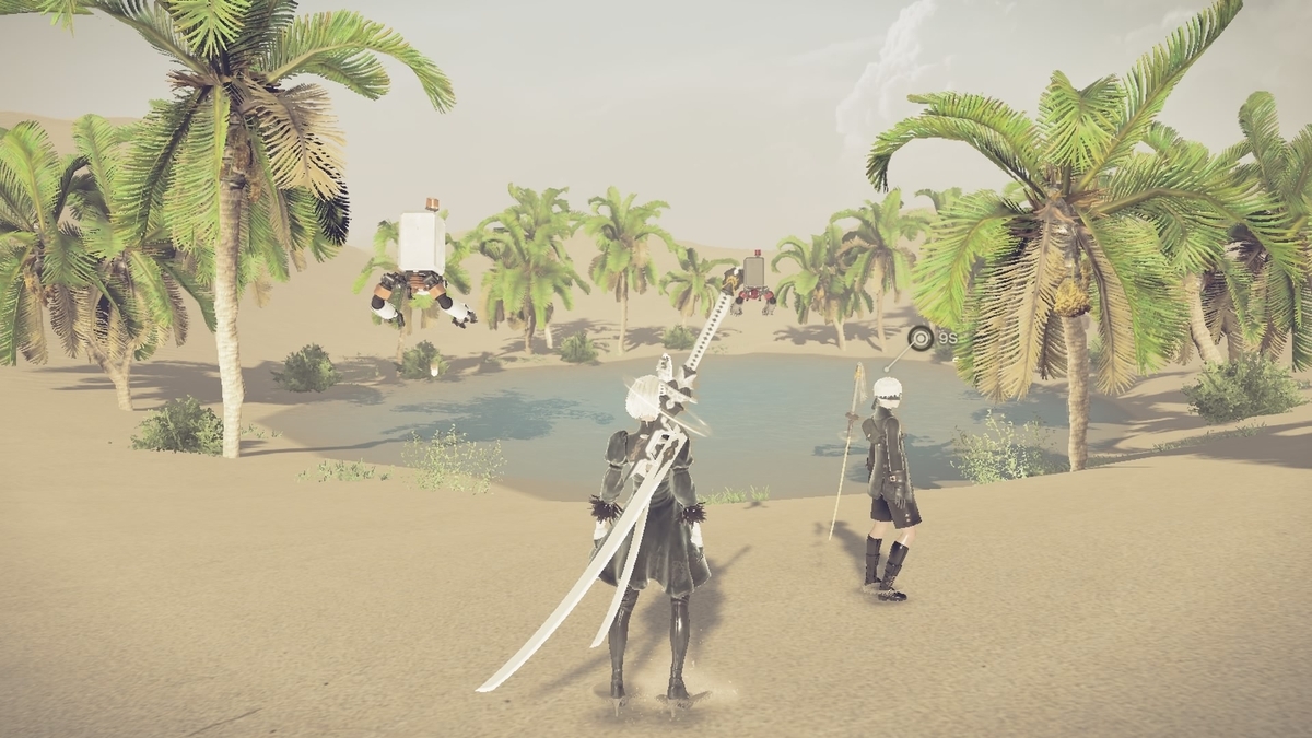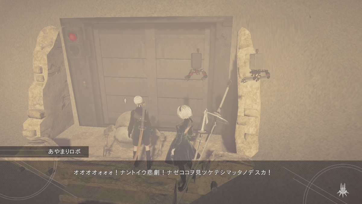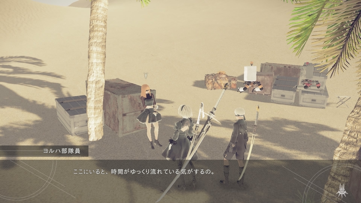 砂漠地帯にもヨルハ部隊員がいて、てっきりこちらも「裏切りのヨルハ」かと思ってビビッてしまいました(笑)